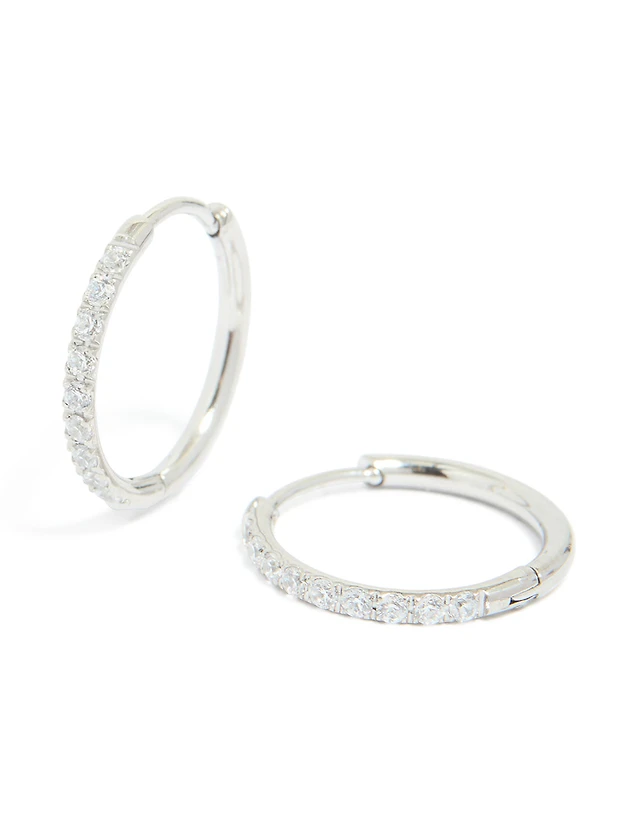 Silver Plated Cubic Zirconia Sapphire Huggie Earrings 6-Pack