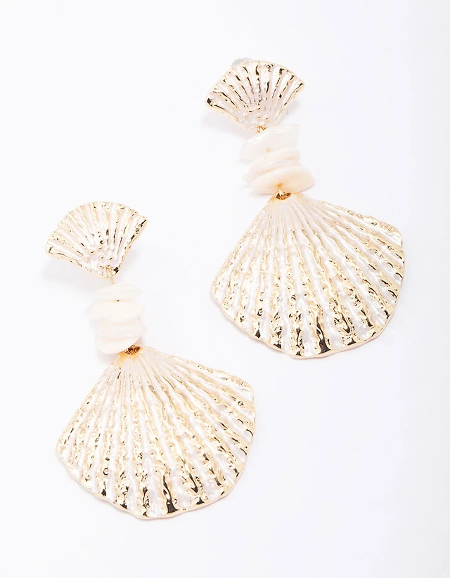 Gold Mega Shell Drop Earrings