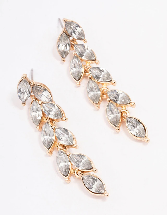 Rose Gold Waterfall Leaf Drop Earrings