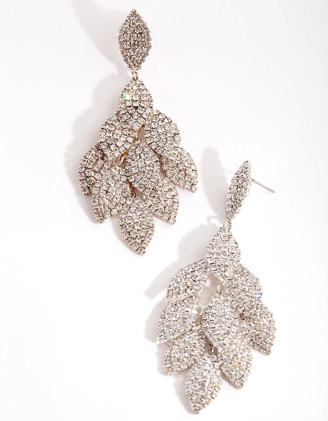 Rose Gold Navette Diamante Drop Earrings