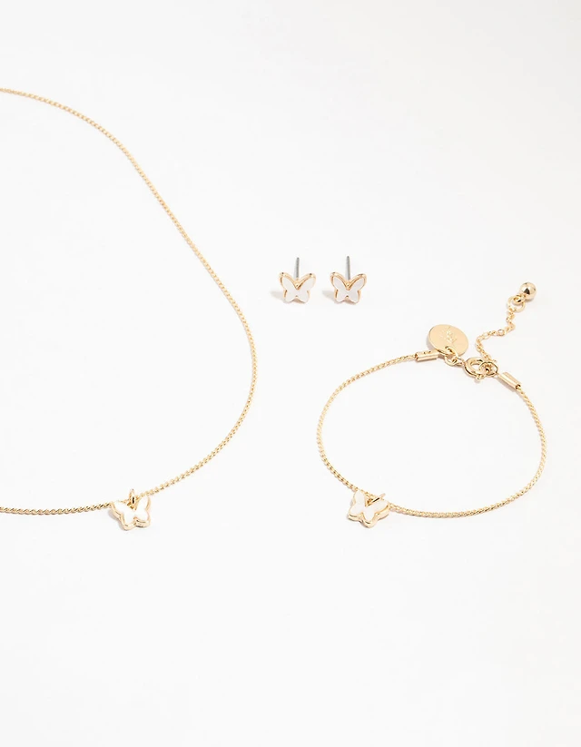 Kids Gold Butterfly Necklace & Earrings & Wrist Cuff Set