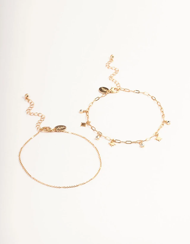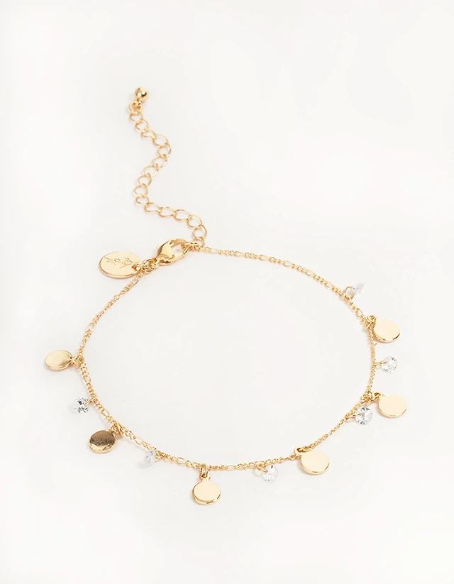 Gold Plated Brass Vine Crystal Charm Bracelet