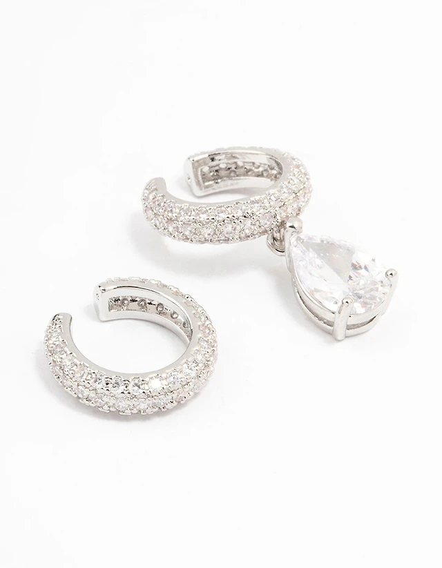Silver Plated Cubic Zirconia Cuff Earrings 2-Pack