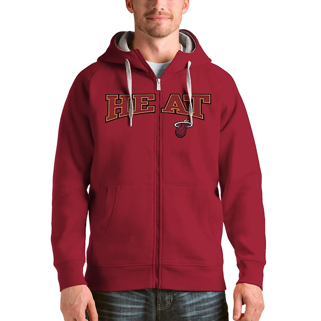 Men's Antigua Heather Black Miami Heat Action Pullover Hoodie