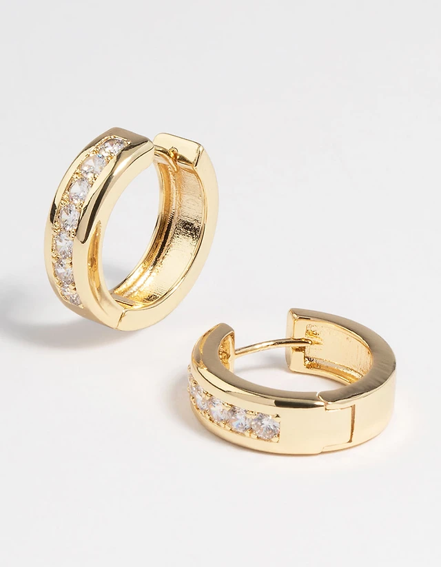 Gold Plated Sterling Silver Huggie Earrings 16mm