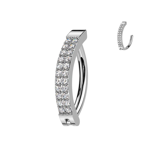 316L Surgical Steel White CZ Double Line Hinged Clicker Belly Ring