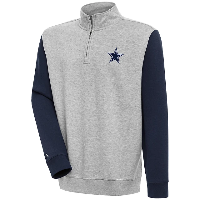 Men's Antigua Heather Gray/Navy Dallas Cowboys Victory Colorblock Quarter-Zip Pullover Top
