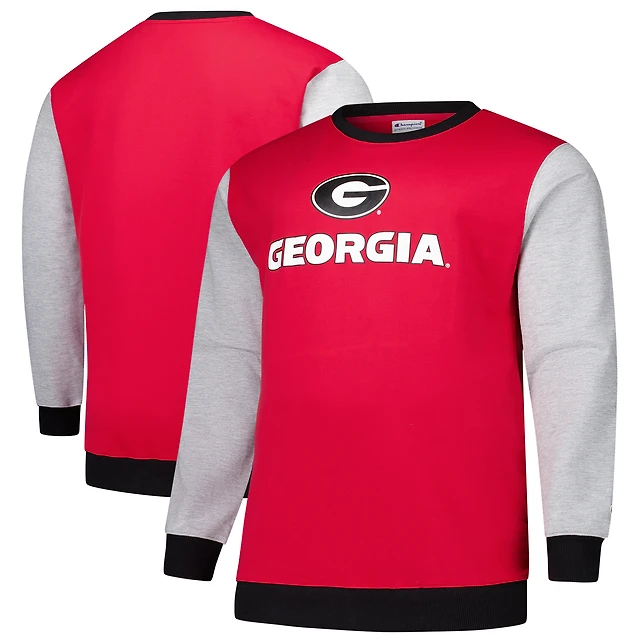 Men's Fanatics Red Georgia Bulldogs Contrast Sleeve Large Chest Big & Tall Pullover Sweatshirt