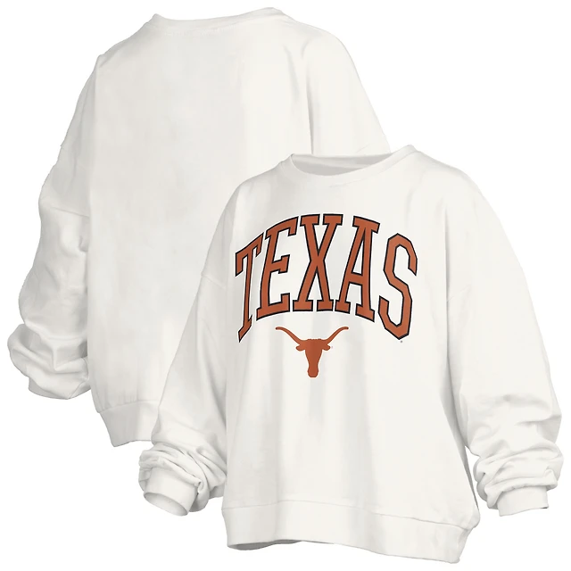 Women's Pressbox White Texas Longhorns Janise Arch Over Logo Waist Length Oversized Pullover Sweatshirt
