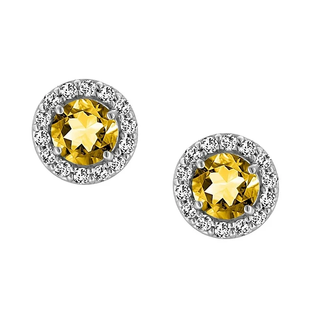 Earrings with Genuine Peridot and Cubic Zirconia in Sterling Silver