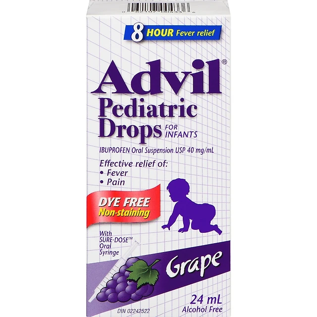 Pediatric Drops for Infants for Fever and Pain Relief, Dye Free, Grape, 24 mL