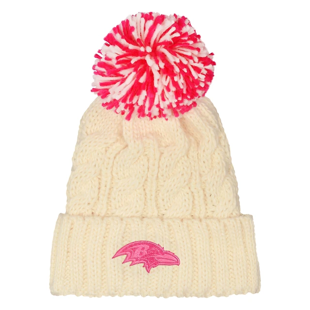 Girls Outerstuff White Baltimore Ravens Cable Cuffed Knit Hat with Pom