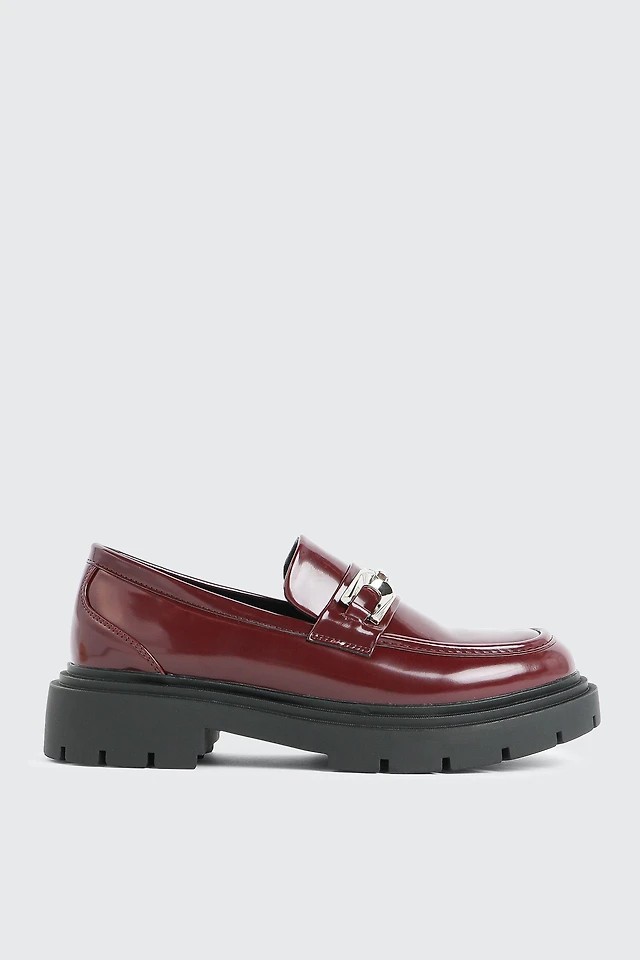 Ardene Lug Sole Loafers with Metal Ornament in | Size | Faux Leather | Eco-Conscious