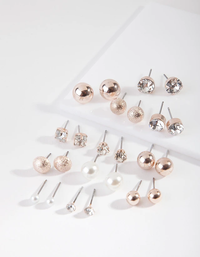 Gold Blush Diamante Pearl Earrings 6-Pack
