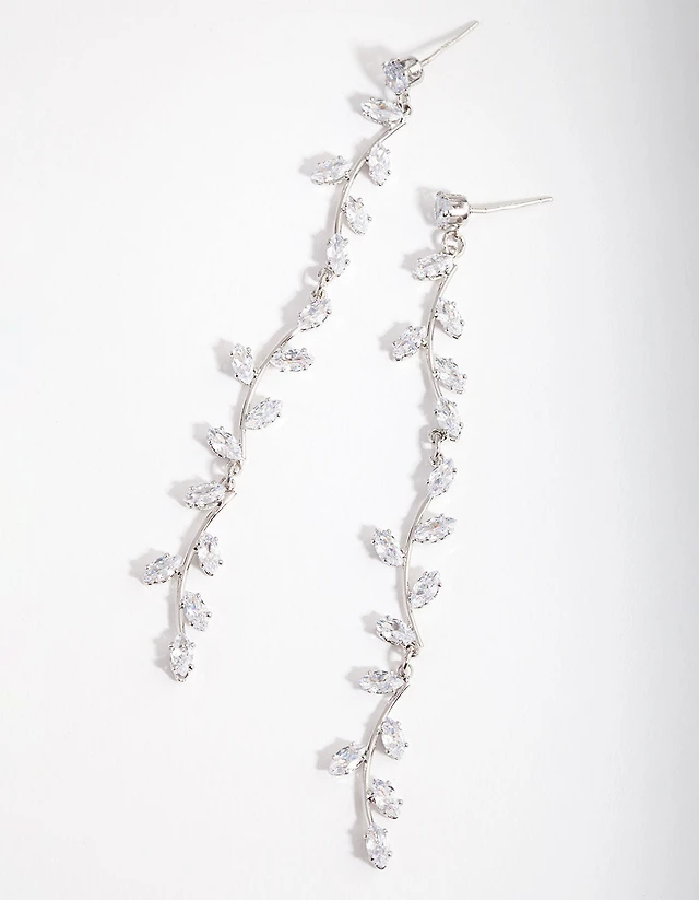 Rhodium Cubic Zirconia Cupchain Drop Earrings
