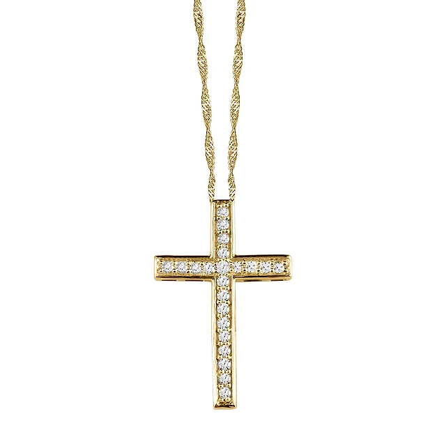 Cross Pendant with .13 Carat TW of Diamonds in 10kt Yellow Gold with Chain