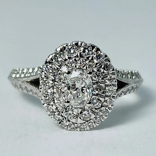 Oval Engagement Ring with 1.33 Carat TW of Lab Created Diamonds in 14kt White Gold