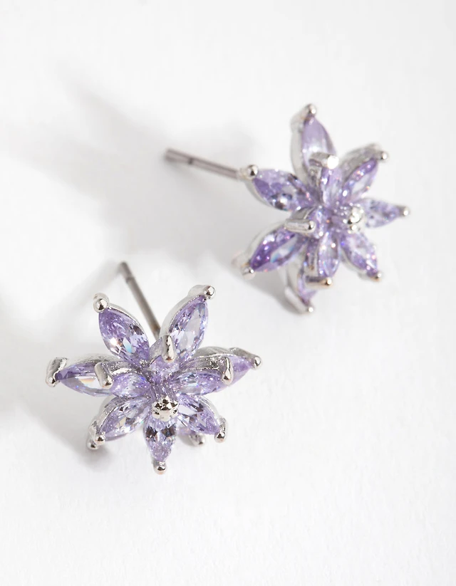 Gold Diamond Simulant Flower Stud Earrings