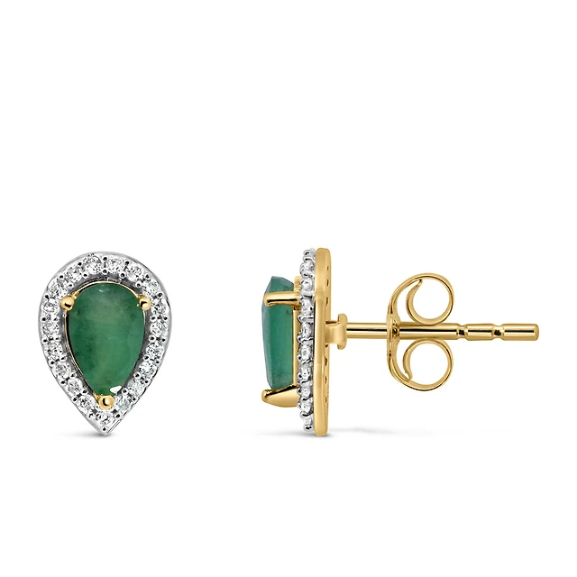 Halo Earrings with .17 Carat TW of Diamonds and 6x4MM Pear Shape Emerald in 10kt Yellow Gold