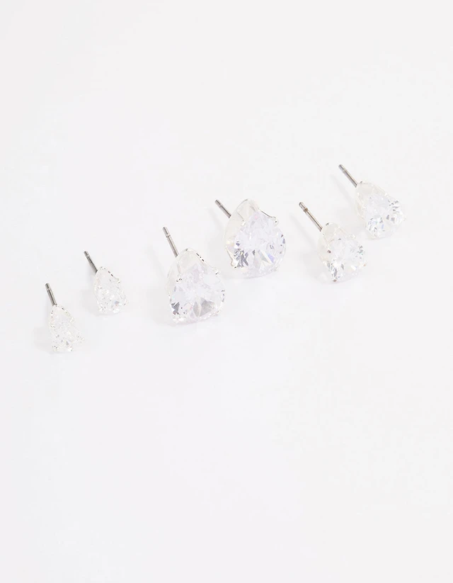 Cubic Zirconia Graduated Curved Trio Stud Earrings in Sterling Silver