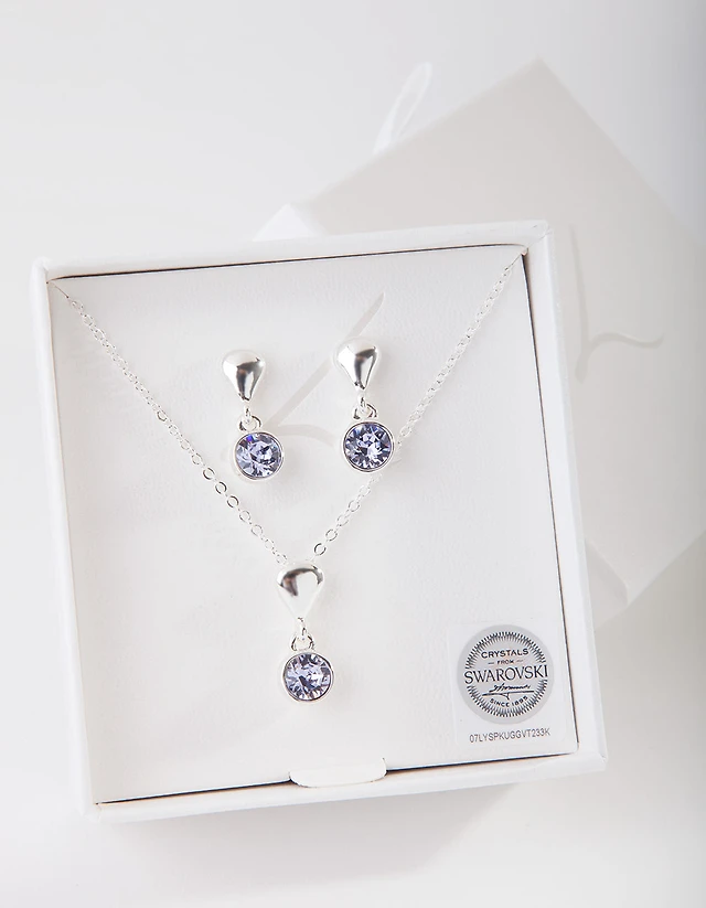 Diamond Simulant Sapphire Necklace & Earrings Set
