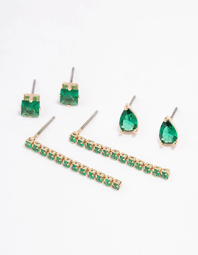 Lab-Created Citrine, Lab-Created Emerald and 0.18 CT. T.W. Diamond Orange Studs in Sterling Silver with 14K Gold Plate