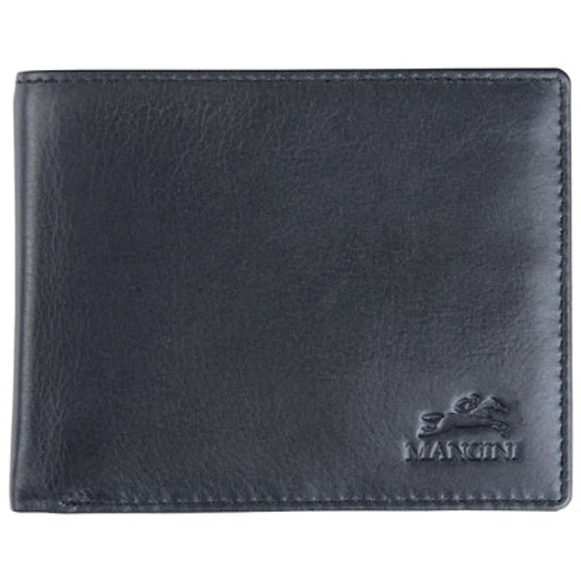 Mancini Bellagio RFID Genuine Leather Bi-fold Wing Zipper Wallet - Black