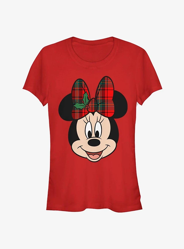 Disney Minnie Mouse Plaid Holiday Bow Classic Girls T-Shirt