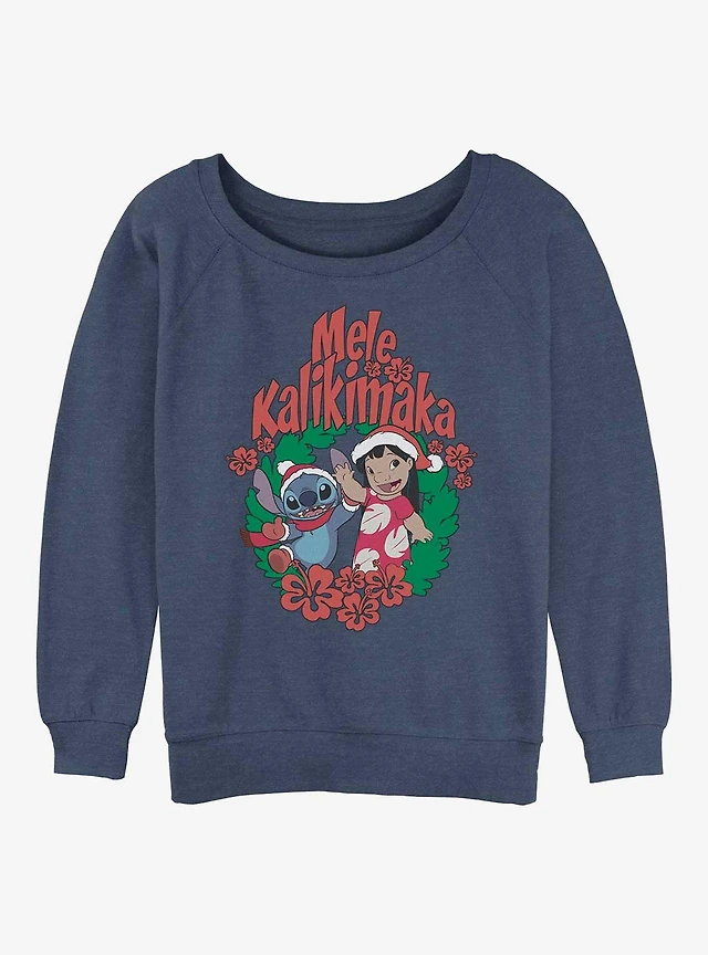 Disney Lilo & Stitch Mele Kalikimaka Wreath Girls Slouchy Sweatshirt