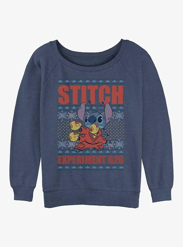 Disney Lilo & Stitch Experiment 626 Ugly Christmas Girls Slouchy Sweatshirt