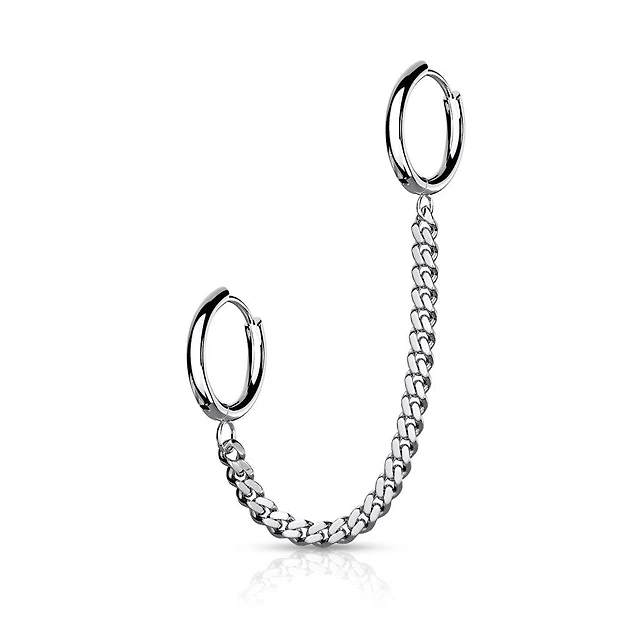 Black PVD Surgical Steel Chain Link Double Hoop Earring