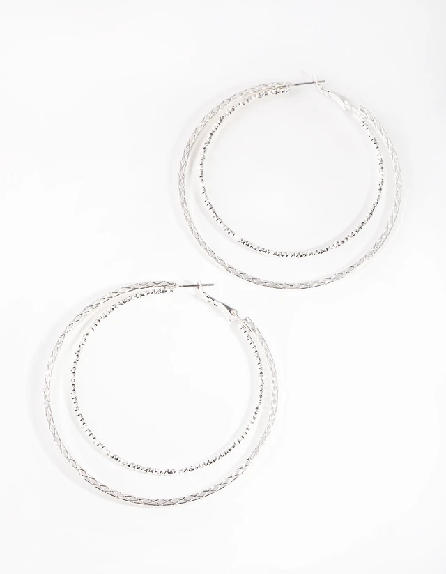 Sterling Silver Cubic Zirconia Double Hoop Earrings