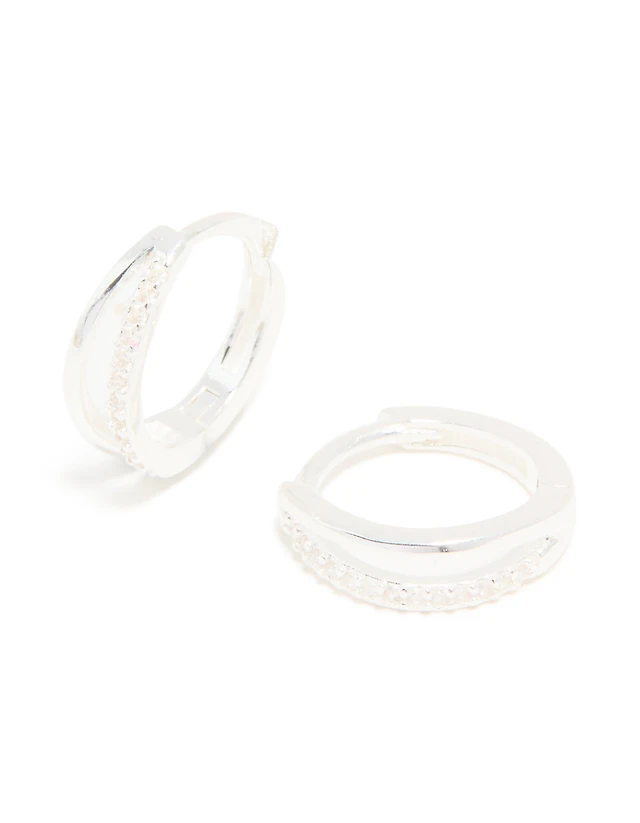 Diamond Accent Split Double Row Hoop Earrings in Sterling Silver
