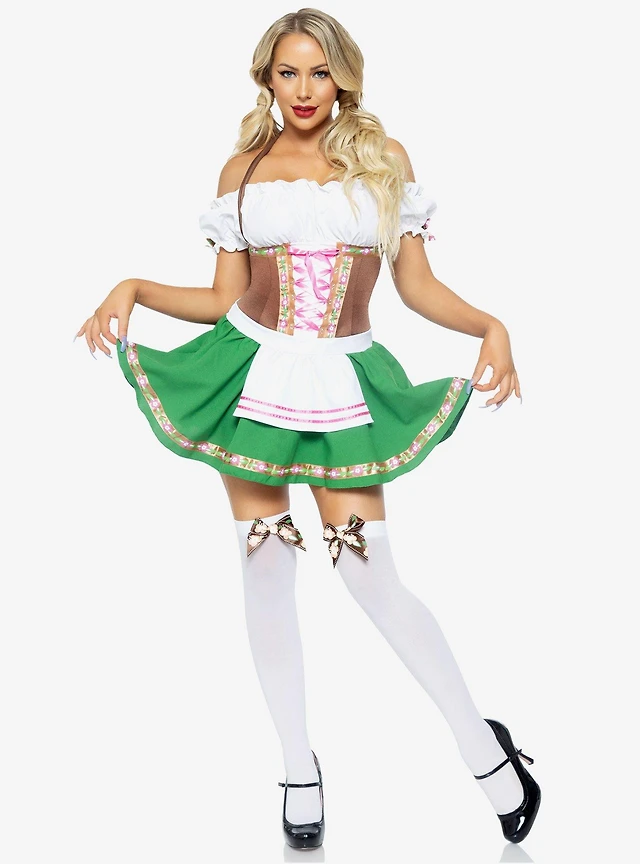 Gretchen Costume Dress with Trim Stockings Bows Plus