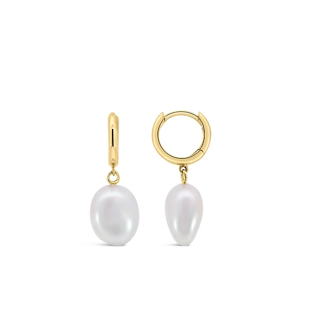 Gold Oval Pearl Drop Earrings
