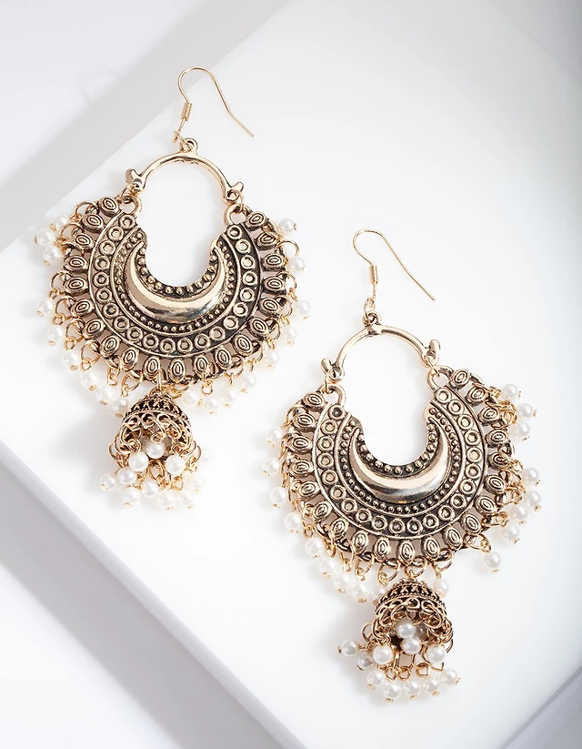 Antique Gold Diamante & Pearl Vintage Drop Earrings
