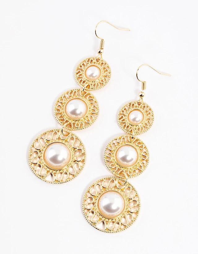 Gold Plated Freshwater Pearl Trio Drop Earrings