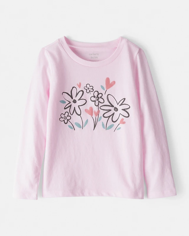 Toddler Girl Metallic Ballet Shoe Long-Sleeve Graphic Tee - White