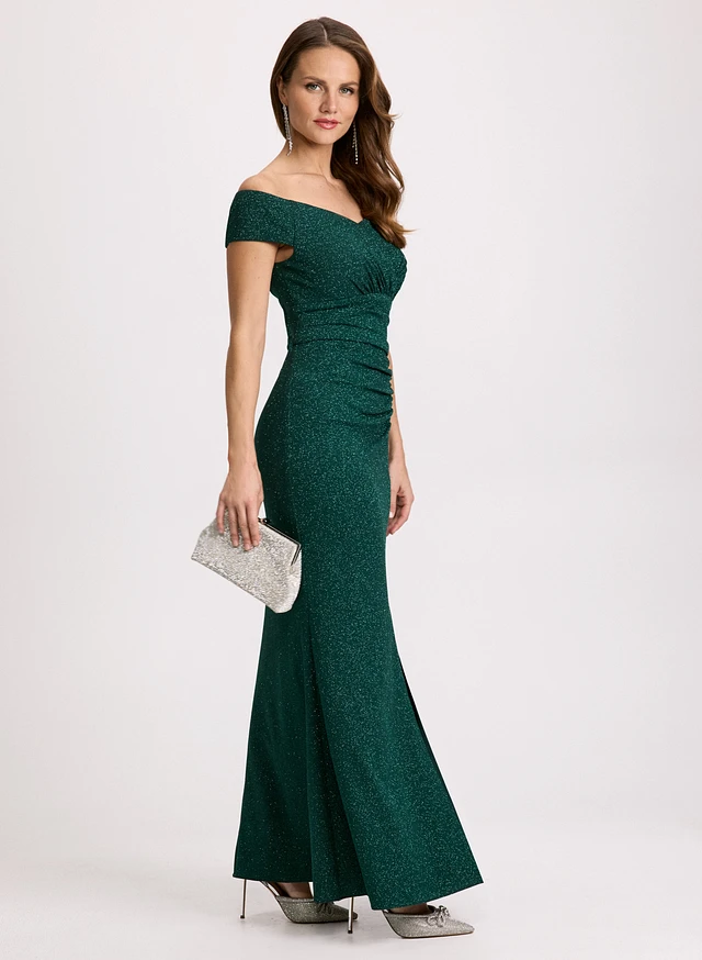 Kace Burgundy Ruched Off-The-Shoulder Maxi Dress