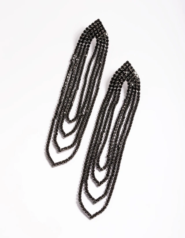 Black Layered Flower Drop Earrings