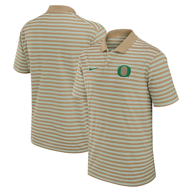 Men's Nike Tan Oregon Ducks Primary Logo Striped Dri-FIT Polo