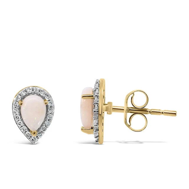 Halo Earrings with .17 Carat TW of Diamonds and 6x4MM Pear Shape Opal in 10kt Yellow Gold