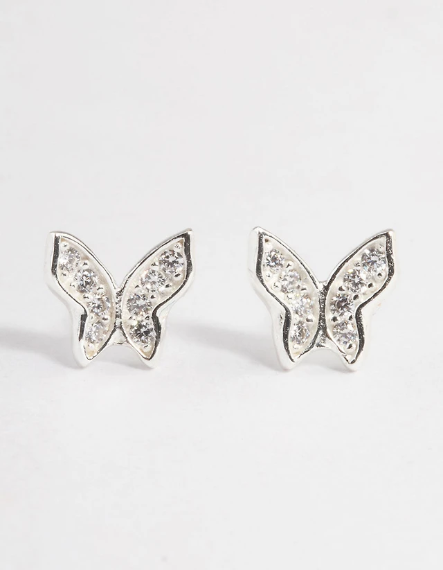 Silver Butterfly & Mixed Style Stud Earrings 12-Pack