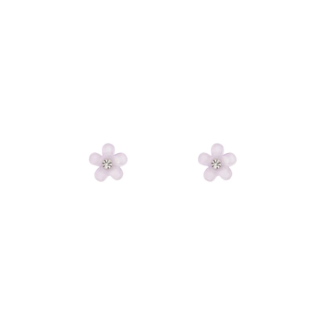 Child's Pink and Red Enamel Flower Stud Earrings in 10K Gold