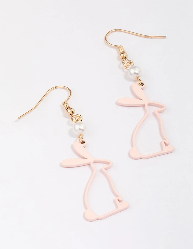 Rose Gold Dainty Pink Flower Vine Drop Earrings