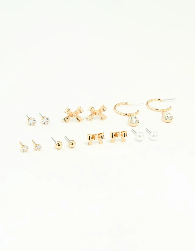 Gold Plated Pink Semi Precious Stone Pearl Stud & Chain Earrings 4-Pack