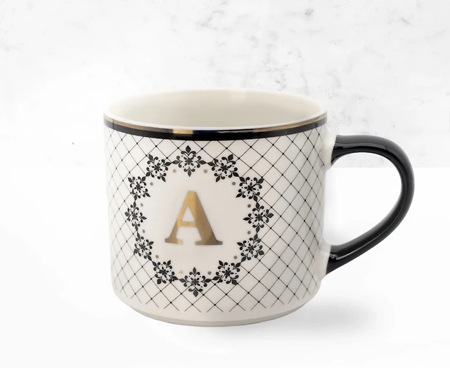 Monogram Mug with Letter A, Black and Gold, 480 ml