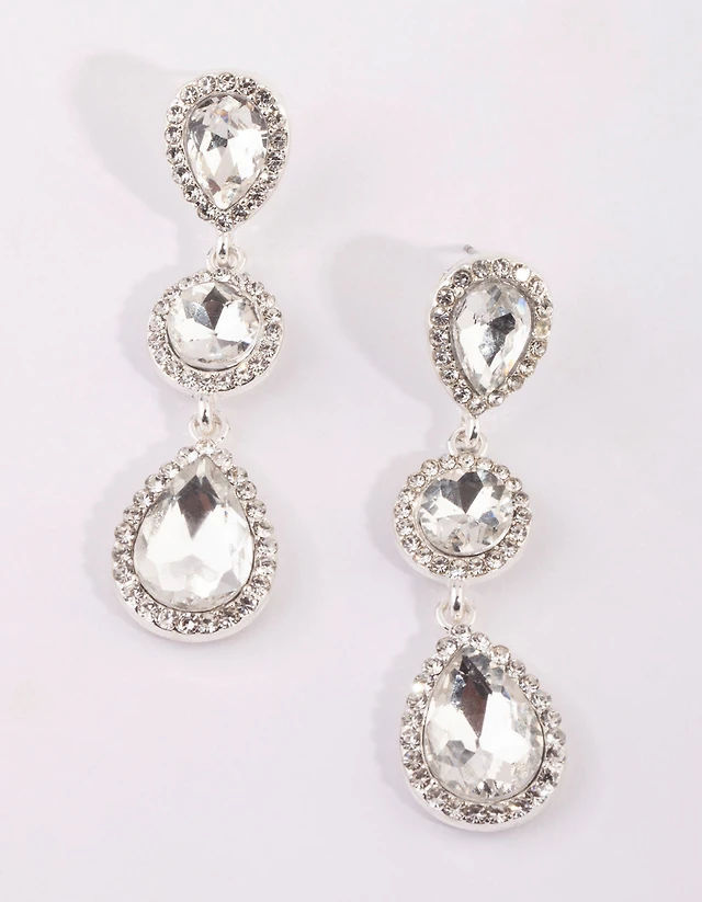 Silver Circular & Teardrop Diamante Earrings