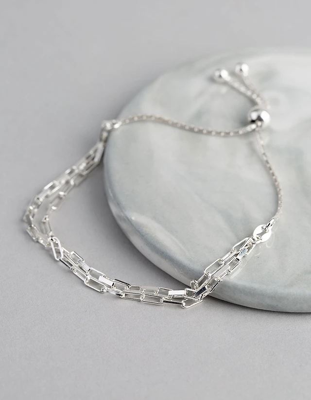 Sterling Silver 2 Row Rectangle Chain Toggle Bracelet