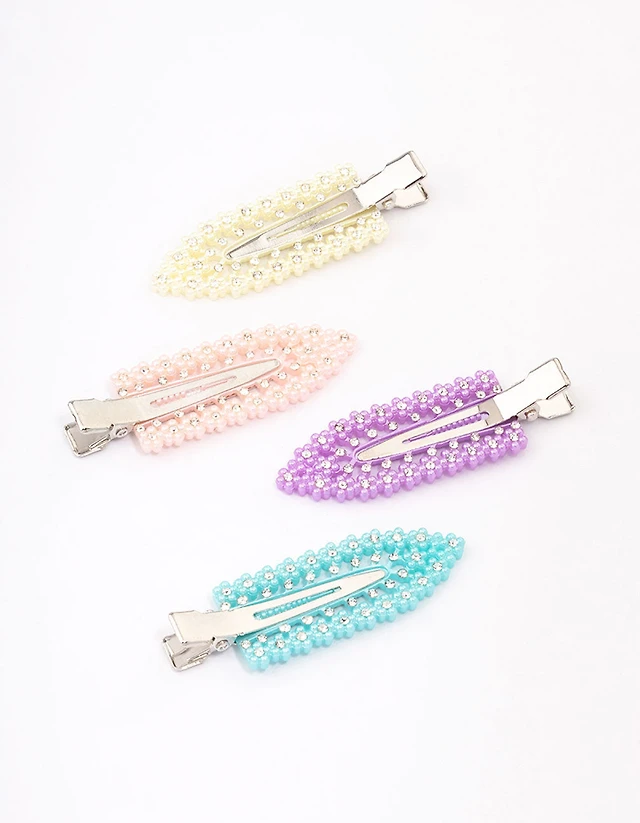 Gold Pearl & Crystal Cross Hair Clip 2-Pack